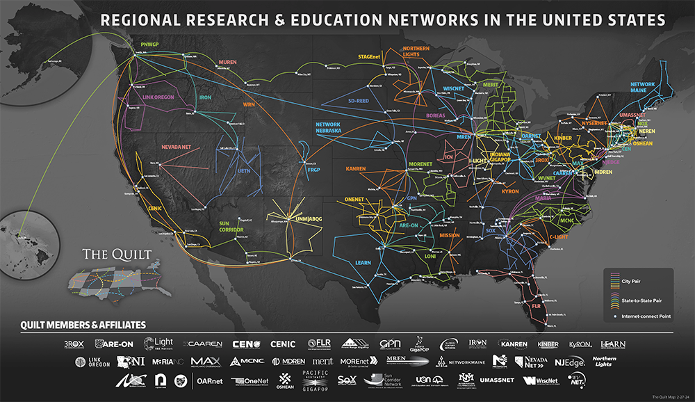 Though it might seem like a lofty goal, it’s not impossible, according to Wuerthwein. He said the NRP’s road to expansion would involve, for starters, engaging the existing regional research and education networks (RENs) and their user communities, such as CENIC and the Great Plains Network (GPN). To reach all those RENs, Wuerthwein proposes to use the Quilt, the organization RENs use to coordinate with each other.