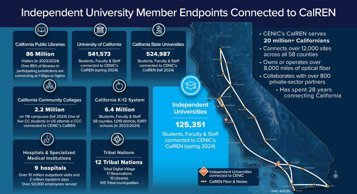 Incredible things are happening within the walls of California’s independent universities, ranging from groundbreaking research to educating the next generation of leaders. Whether the goal is finding a cure for cancer or connecting students to the resources they need, independent university members are working closely with CENIC to design and implement highly dynamic networks.